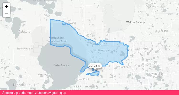 Apopka City is a small town located in the United States, and its official zip code is 32703. Below is a map displaying the geographic location and boundaries of above Zip Code. The map showcases the specific region within the United States where Apopka City is located, and it provides an understanding of the town's location relative to nearby cities and states.