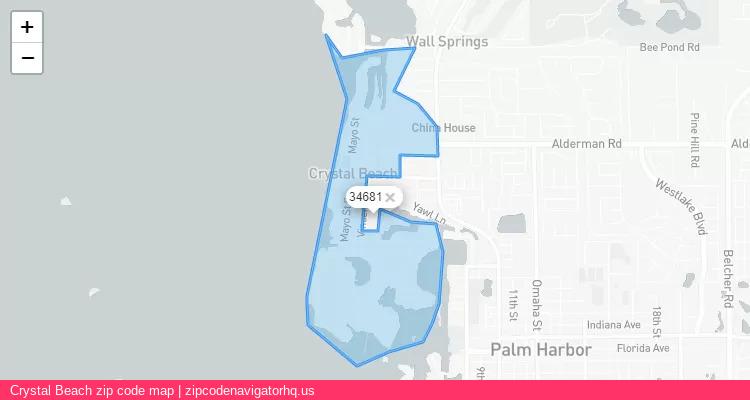 Crystal Beach City is a small town located in the United States, and its official zip code is 34681. Below is a map displaying the geographic location and boundaries of above Zip Code. The map showcases the specific region within the United States where Crystal Beach City is located, and it provides an understanding of the town's location relative to nearby cities and states.
