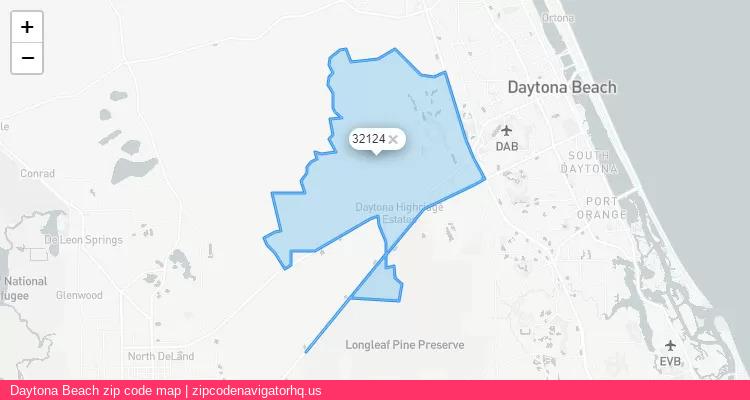 Daytona Beach City is a small town located in the United States, and its official zip code is 32124. Below is a map displaying the geographic location and boundaries of above Zip Code. The map showcases the specific region within the United States where Daytona Beach City is located, and it provides an understanding of the town's location relative to nearby cities and states.