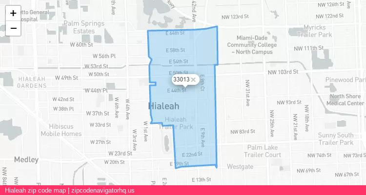 Hialeah City is a small town located in the United States, and its official zip code is 33013. Below is a map displaying the geographic location and boundaries of above Zip Code. The map showcases the specific region within the United States where Hialeah City is located, and it provides an understanding of the town's location relative to nearby cities and states.