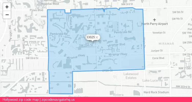 Hollywood City is a small town located in the United States, and its official zip code is 33025. Below is a map displaying the geographic location and boundaries of above Zip Code. The map showcases the specific region within the United States where Hollywood City is located, and it provides an understanding of the town's location relative to nearby cities and states.
