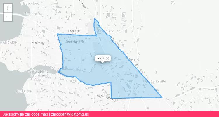 Jacksonville City is a small town located in the United States, and its official zip code is 32258. Below is a map displaying the geographic location and boundaries of above Zip Code. The map showcases the specific region within the United States where Jacksonville City is located, and it provides an understanding of the town's location relative to nearby cities and states.