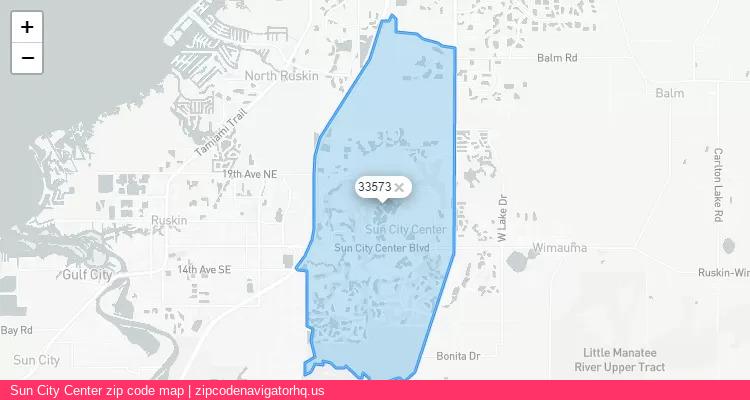 Sun City Center City is a small town located in the United States, and its official zip code is 33573. Below is a map displaying the geographic location and boundaries of above Zip Code. The map showcases the specific region within the United States where Sun City Center City is located, and it provides an understanding of the town's location relative to nearby cities and states.